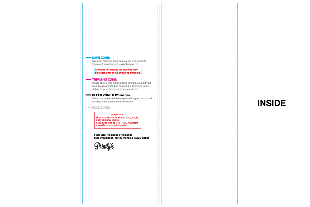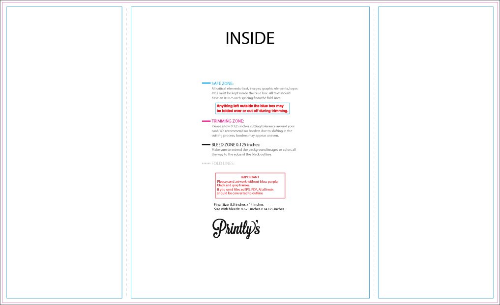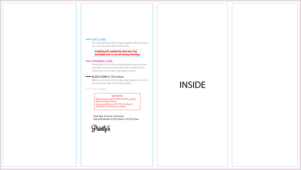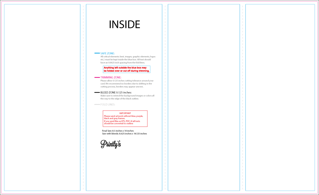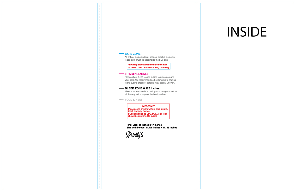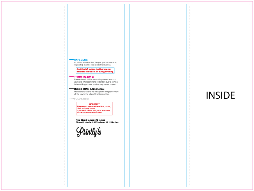 Templates Business Cards Dimensions Description Type PDF File EPS File JPG File 2x3.5 BUSINESS CARDS Horizontal 3.5x2 BUSINESS CARDS Vertical Flyers Dimensions Description Type PDF File EPS File JPG File 5.5x8.5 5.5 x 8.5 Vertical 8.5x14 8.5 x 14 Vertical 8.5x11 8.5 x 11 Vertical 11x17 11 x 17 Vertical Table Tents Dimensions Description Type PDF File EPS File JPG File 4x18 FOLDER - 3INCH - OUTSIDE - 4X18 Vertical Direct Mailers Dimensions Description Type PDF File EPS File JPG File 12 x 4.5Front Horizontal Brochures Dimensions Description Type PDF File EPS File JPG File 11x8.5 INSIDE - HALF FOLD Horizontal 11x8.5 OUTSIDE - HALF FOLD Horizontal 11x8.5 INSIDE - Z FOLD Horizontal 11x8.5 OUTSIDE - Z FOLD Horizontal 11x8.5 OUTSIDE - TRIFOLD Horizontal 11x8.5 INSIDE - TRIFOLD Horizontal 11x8.5 OUTSIDE - HALF FOLD TO 4.25 X 11 Horizontal 11x8.5 INSIDE - HALF FOLD TO 4.25 X 11 Horizontal 14x8.5 OUTSIDE - ACCORDION FOLD Horizontal 14x8.5 INSIDE - ACCORDION FOLD Horizontal 14x8.5 OUTSIDE - DOUBLE GATE FOLD Horizontal 14x8.5 INSIDE - DOUBLE GATE FOLD Horizontal 14x8.5 INSIDE - SINGLE OPEN GATE FOLD Horizontal 14x8.5 OUTSIDE - SINGLE OPEN GATE FOLD Horizontal 14x8.5 INSIDE - ROLL FOLD (4 PANEL) Horizontal 14x8.5 OUTSIDE - ROLL FOLD (4 PANEL) Horizontal 14x8.5 INSIDE - DOUBLE PARALLEL REVERSE FOLD Horizontal 14x8.5 OUTSIDE - DOUBLE PARALLEL REVERSE FOLD Horizontal 14x8.5 INSIDE - DOUBLE PARALLEL FOLD Horizontal 14x8.5 OUTSIDE - DOUBLE PARALLEL FOLD Horizontal 14x8.5 INSIDE - Z FOLD Horizontal 14x8.5 OUTSIDE - Z FOLD Horizontal 14x8.5 INSIDE - HALF FOLD Horizontal 14x8.5 OUTSIDE - HALF FOLD Horizontal 14x8.5 INSIDE - TRI FOLD Horizontal 14x8.5 OUTSIDE - TRI-FOLD Horizontal 14x8.5 OUTSIDE - TRI-FOLD Horizontal 9x6 INSIDE - TRI FOLD Horizontal 9x6 OUTSIDE - TRI-FOLD Horizontal 9x6 INSIDE - HALF FOLD Horizontal 9x6 OUTSIDE - HALF FOLD Horizontal 12x9 INSIDE - TRI-FOLD Horizontal 12x9 OUTSIDE - TRI-FOLD Horizontal 12x9 INSIDE - HALF FOLD Horizontal 12x9 OUTSIDE - HALF FOLD Horizontal 12x9 INSIDE - Z FOLD Horizontal 12x9 OUTSIDE - Z FOLD Horizontal 12x9 INSIDE - ROLL FOLD (4 PANEL) Horizontal 12x9 OUTSIDE - ROLL FOLD (4 PANEL) Horizontal 12x9 INSIDE - HALF FOLD TO 4.5 X12 Horizontal 12x9 OUTSIDE - HALF FOLD TO 4.5 X 12 Horizontal 12x9 INSIDE - ACCORDION FOLD Horizontal 12x9 OUTSIDE - ACCORDION FOLD Horizontal 12x9 INSIDE - HALF FOLD Horizontal 12x9 OUTSIDE - HALF FOLD Horizontal 16x9 INSIDE - ACCORDION FOLD Horizontal 17x11 OUTSIDE - DOUBLE GATE FOLD Horizontal 16x9 OUTSIDE - ACCORDION FOLD Horizontal 16x9 INSIDE - DOUBLE GATE FOLD Horizontal 16x9 OUTSIDE - DOUBLE GATE FOLD Horizontal 16x9 INSIDE - DOUBLE PARALLEL FOLD Horizontal 16x9 OUTSIDE - DOUBLE PARALLEL FOLD Horizontal 16x9 INSIDE - DOUBLE PARALLEL REVERSE FOLD Horizontal 16x9 OUTSIDE - DOUBLE PARALLEL REVERSE FOLD Horizontal 16x9 INSIDE - HALF FOLD Horizontal 16x9 OUTSIDE - HALF FOLD Horizontal 16x9 INSIDE - ROLL FOLD (4 PANEL) Horizontal 16x9 OUTSIDE - ROLL FOLD (4 PANEL) Horizontal 16x9 INSIDE - SINGLE OPEN GATE FOLD Horizontal 16x9 OUTSIDE - SINGLE OPEN GATE FOLD Horizontal 16x9 INSIDE - TRI-FOLD Horizontal 16x9 OUTSIDE - TRI-FOLD Horizontal 16x9 INSIDE - Z FOLD Horizontal 16x9 OUTSIDE - Z FOLD Horizontal 17x11 INSIDE - ACCORDION FOLD Horizontal 17x11 OUTSIDE - ACCORDION FOLD Horizontal 17x11 INSIDE - DOUBLE GATE FOLD Horizontal 17x11 INSIDE DOUBLE PARALLEL FOLD Horizontal 17x11 OUTSIDE - DOUBLE PARALLEL FOLD Horizontal 17x11 DOUBLE PARALLEL REVERSE FOLD Horizontal 17x11 OUTSIDE - DOUBLE PARALLEL REVERSE FOLD Horizontal 17x11 INSIDE - HALF FOLD TO TRI-FOLD Horizontal 17x11 OUTSIDE - HALF FOLD TO TRI-FOLD Horizontal 17x11 INSIDE - HALF FOLD TO 8.5 X 11 FOLD Horizontal 17x11 OUTSIDE - HALF FOLD TO 5.5 X 8.5 FOLD Horizontal 17x11 INSIDE - HALF FOLD TO 8.5 X 11 FOLD Horizontal 17x11 OUTSIDE - HALF FOLD TO 8.5 X 11 FOLD Horizontal 17x11 INSIDE - ROLL FOLD (4 PANEL) Horizontal 17x11 OUTSIDE - ROLL FOLD (4PANEL) Horizontal 17x11 INSIDE - SINGLE OPEN GATE FOLD Horizontal 17x11 OUTSIDE - SINGLE OPEN GATE FOLD Horizontal 17x11 INSIDE - TRI-FOLD Horizontal 17x11 OUTSIDE - TRI-FOLD Horizontal 17x11 INSIDE - Z-FOLD Horizontal 17x11 OUTSIDE - Z-FOLD Horizontal 25.5x11 INSIDE - TRI-FOLD Horizontal 25.5x11 OUTSIDE - TRI-FOLD Horizontal 18x12 INSIDE - ACCORDION FOLD Horizontal 18x12 OUTSIDE - ACCORDION FOLD Horizontal 18x12 INSIDE - DOUBLE GATE FOLD Horizontal 18x12 OUTSIDE - DOUBLE GATE FOLD Horizontal 18x12 INSIDE - DOUBLE PARALLEL FOLD Horizontal 18x12 OUTSIDE - DOUBLE PARALLEL FOLD Horizontal 18x12 INSIDE - DOUBLE PARALLEL REVERSE FOLD Horizontal 18x12 OUTSIDE - DOUBLE PARALLEL REVERSE FOLD Horizontal 18x12 INSIDE - HOLD Horizontal 18x12 OUTSIDE - HALF FOLD Horizontal 18x12 INSIDE - HALF FOLD THEN HALF FOLD Horizontal 18x12 OUTSIDE - HALF FOLD THEN HALF FOLD Horizontal 18x12 INSIDE - HALF FOLD THEN TRI-FOLD Horizontal 18x12 OUTSIDE - HALF FOLD TO TRI-FOLD Horizontal 18x12 INSIDE - ROLL FOLD Horizontal 18x12 OUTSIDE - ROLL FOLD Horizontal 18x12 INSIDE - SINGLE OPEN GATE FOLD Horizontal 18x12 OUTSIDE - SINGLE OPEN GATE FOLD Horizontal 18x12 INSIDE - TRI-FOLD Horizontal 18x12 OUTSIDE - TRI-FOLD Horizontal 18x12 INSIDE - Z FOLD Horizontal 18x12 OUTSIDE - Z FOLD Horizontal Letterheads Dimensions Description Type PDF File EPS File JPG File 8.5x14 LETTERHEAD 8.5 x 14 Horizontal 8.5x11 STANDARD LETTERHEAD 8.5 X 11 Vertical Door Hangers Dimensions Description Type PDF File EPS File JPG File 4.25x11 FRONT - DOOR HANGERS Horizontal 3.5x8.5 BACK - DOOR HANGER Vertical 3.5x8.5 FRONT - DOOR HANGER Horizontal 4.25x11 BACK - DOORHANGER Horizontal Poster Printing Dimensions Description Type PDF File EPS File JPG File 19x13 POSTER PRINTING Horizontal 24x18 POSTER PRINTING Horizontal 27x19 POSTER PRINTING Horizontal 36x24 POSTER PRINTING Horizontal 38x24 POSTER PRINTING Horizontal 39x26 POSTER PRINTING Horizontal