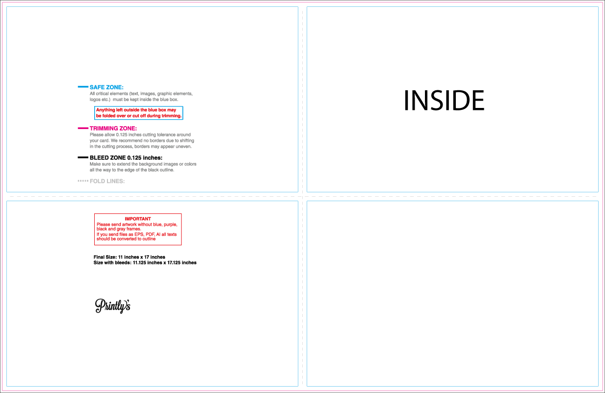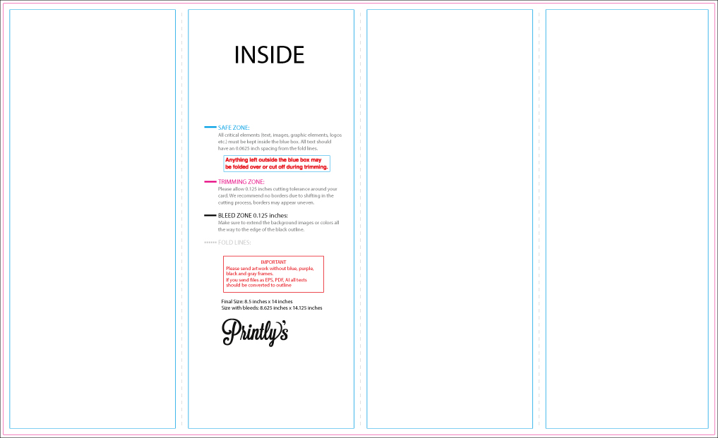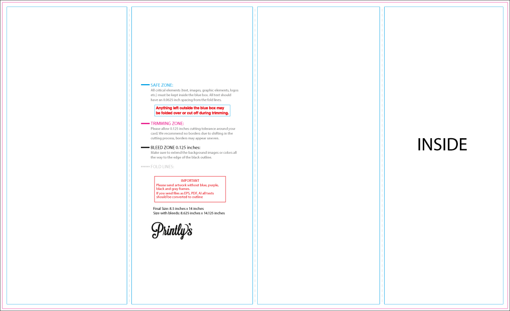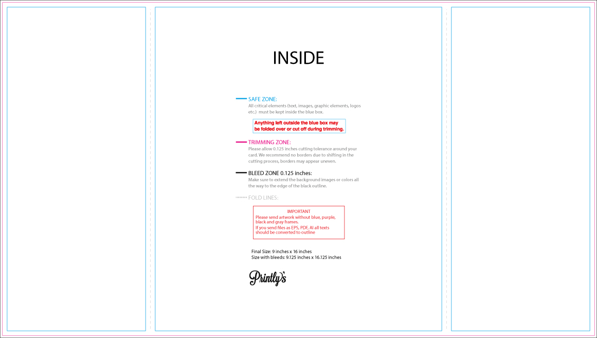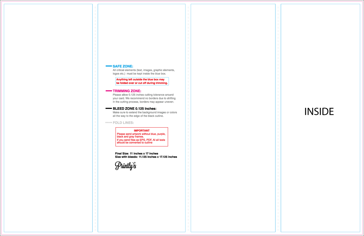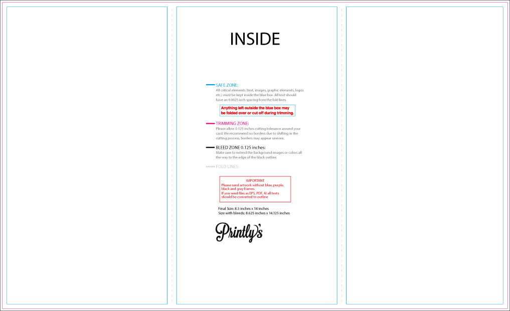 Templates Business Cards Dimensions Description Type PDF File EPS File JPG File 2x3.5 BUSINESS CARDS Horizontal 3.5x2 BUSINESS CARDS Vertical Flyers Dimensions Description Type PDF File EPS File JPG File 5.5x8.5 5.5 x 8.5 Vertical 8.5x14 8.5 x 14 Vertical 8.5x11 8.5 x 11 Vertical 11x17 11 x 17 Vertical Table Tents Dimensions Description Type PDF File EPS File JPG File 4x18 FOLDER - 3INCH - OUTSIDE - 4X18 Vertical Direct Mailers Dimensions Description Type PDF File EPS File JPG File 12 x 4.5Front Horizontal Brochures Dimensions Description Type PDF File EPS File JPG File 11x8.5 INSIDE - HALF FOLD Horizontal 11x8.5 OUTSIDE - HALF FOLD Horizontal 11x8.5 INSIDE - Z FOLD Horizontal 11x8.5 OUTSIDE - Z FOLD Horizontal 11x8.5 OUTSIDE - TRIFOLD Horizontal 11x8.5 INSIDE - TRIFOLD Horizontal 11x8.5 OUTSIDE - HALF FOLD TO 4.25 X 11 Horizontal 11x8.5 INSIDE - HALF FOLD TO 4.25 X 11 Horizontal 14x8.5 OUTSIDE - ACCORDION FOLD Horizontal 14x8.5 INSIDE - ACCORDION FOLD Horizontal 14x8.5 OUTSIDE - DOUBLE GATE FOLD Horizontal 14x8.5 INSIDE - DOUBLE GATE FOLD Horizontal 14x8.5 INSIDE - SINGLE OPEN GATE FOLD Horizontal 14x8.5 OUTSIDE - SINGLE OPEN GATE FOLD Horizontal 14x8.5 INSIDE - ROLL FOLD (4 PANEL) Horizontal 14x8.5 OUTSIDE - ROLL FOLD (4 PANEL) Horizontal 14x8.5 INSIDE - DOUBLE PARALLEL REVERSE FOLD Horizontal 14x8.5 OUTSIDE - DOUBLE PARALLEL REVERSE FOLD Horizontal 14x8.5 INSIDE - DOUBLE PARALLEL FOLD Horizontal 14x8.5 OUTSIDE - DOUBLE PARALLEL FOLD Horizontal 14x8.5 INSIDE - Z FOLD Horizontal 14x8.5 OUTSIDE - Z FOLD Horizontal 14x8.5 INSIDE - HALF FOLD Horizontal 14x8.5 OUTSIDE - HALF FOLD Horizontal 14x8.5 INSIDE - TRI FOLD Horizontal 14x8.5 OUTSIDE - TRI-FOLD Horizontal 14x8.5 OUTSIDE - TRI-FOLD Horizontal 9x6 INSIDE - TRI FOLD Horizontal 9x6 OUTSIDE - TRI-FOLD Horizontal 9x6 INSIDE - HALF FOLD Horizontal 9x6 OUTSIDE - HALF FOLD Horizontal 12x9 INSIDE - TRI-FOLD Horizontal 12x9 OUTSIDE - TRI-FOLD Horizontal 12x9 INSIDE - HALF FOLD Horizontal 12x9 OUTSIDE - HALF FOLD Horizontal 12x9 INSIDE - Z FOLD Horizontal 12x9 OUTSIDE - Z FOLD Horizontal 12x9 INSIDE - ROLL FOLD (4 PANEL) Horizontal 12x9 OUTSIDE - ROLL FOLD (4 PANEL) Horizontal 12x9 INSIDE - HALF FOLD TO 4.5 X12 Horizontal 12x9 OUTSIDE - HALF FOLD TO 4.5 X 12 Horizontal 12x9 INSIDE - ACCORDION FOLD Horizontal 12x9 OUTSIDE - ACCORDION FOLD Horizontal 12x9 INSIDE - HALF FOLD Horizontal 12x9 OUTSIDE - HALF FOLD Horizontal 16x9 INSIDE - ACCORDION FOLD Horizontal 17x11 OUTSIDE - DOUBLE GATE FOLD Horizontal 16x9 OUTSIDE - ACCORDION FOLD Horizontal 16x9 INSIDE - DOUBLE GATE FOLD Horizontal 16x9 OUTSIDE - DOUBLE GATE FOLD Horizontal 16x9 INSIDE - DOUBLE PARALLEL FOLD Horizontal 16x9 OUTSIDE - DOUBLE PARALLEL FOLD Horizontal 16x9 INSIDE - DOUBLE PARALLEL REVERSE FOLD Horizontal 16x9 OUTSIDE - DOUBLE PARALLEL REVERSE FOLD Horizontal 16x9 INSIDE - HALF FOLD Horizontal 16x9 OUTSIDE - HALF FOLD Horizontal 16x9 INSIDE - ROLL FOLD (4 PANEL) Horizontal 16x9 OUTSIDE - ROLL FOLD (4 PANEL) Horizontal 16x9 INSIDE - SINGLE OPEN GATE FOLD Horizontal 16x9 OUTSIDE - SINGLE OPEN GATE FOLD Horizontal 16x9 INSIDE - TRI-FOLD Horizontal 16x9 OUTSIDE - TRI-FOLD Horizontal 16x9 INSIDE - Z FOLD Horizontal 16x9 OUTSIDE - Z FOLD Horizontal 17x11 INSIDE - ACCORDION FOLD Horizontal 17x11 OUTSIDE - ACCORDION FOLD Horizontal 17x11 INSIDE - DOUBLE GATE FOLD Horizontal 17x11 INSIDE DOUBLE PARALLEL FOLD Horizontal 17x11 OUTSIDE - DOUBLE PARALLEL FOLD Horizontal 17x11 DOUBLE PARALLEL REVERSE FOLD Horizontal 17x11 OUTSIDE - DOUBLE PARALLEL REVERSE FOLD Horizontal 17x11 INSIDE - HALF FOLD TO TRI-FOLD Horizontal 17x11 OUTSIDE - HALF FOLD TO TRI-FOLD Horizontal 17x11 INSIDE - HALF FOLD TO 8.5 X 11 FOLD Horizontal 17x11 OUTSIDE - HALF FOLD TO 5.5 X 8.5 FOLD Horizontal 17x11 INSIDE - HALF FOLD TO 8.5 X 11 FOLD Horizontal 17x11 OUTSIDE - HALF FOLD TO 8.5 X 11 FOLD Horizontal 17x11 INSIDE - ROLL FOLD (4 PANEL) Horizontal 17x11 OUTSIDE - ROLL FOLD (4PANEL) Horizontal 17x11 INSIDE - SINGLE OPEN GATE FOLD Horizontal 17x11 OUTSIDE - SINGLE OPEN GATE FOLD Horizontal 17x11 INSIDE - TRI-FOLD Horizontal 17x11 OUTSIDE - TRI-FOLD Horizontal 17x11 INSIDE - Z-FOLD Horizontal 17x11 OUTSIDE - Z-FOLD Horizontal 25.5x11 INSIDE - TRI-FOLD Horizontal 25.5x11 OUTSIDE - TRI-FOLD Horizontal 18x12 INSIDE - ACCORDION FOLD Horizontal 18x12 OUTSIDE - ACCORDION FOLD Horizontal 18x12 INSIDE - DOUBLE GATE FOLD Horizontal 18x12 OUTSIDE - DOUBLE GATE FOLD Horizontal 18x12 INSIDE - DOUBLE PARALLEL FOLD Horizontal 18x12 OUTSIDE - DOUBLE PARALLEL FOLD Horizontal 18x12 INSIDE - DOUBLE PARALLEL REVERSE FOLD Horizontal 18x12 OUTSIDE - DOUBLE PARALLEL REVERSE FOLD Horizontal 18x12 INSIDE - HOLD Horizontal 18x12 OUTSIDE - HALF FOLD Horizontal 18x12 INSIDE - HALF FOLD THEN HALF FOLD Horizontal 18x12 OUTSIDE - HALF FOLD THEN HALF FOLD Horizontal 18x12 INSIDE - HALF FOLD THEN TRI-FOLD Horizontal 18x12 OUTSIDE - HALF FOLD TO TRI-FOLD Horizontal 18x12 INSIDE - ROLL FOLD Horizontal 18x12 OUTSIDE - ROLL FOLD Horizontal 18x12 INSIDE - SINGLE OPEN GATE FOLD Horizontal 18x12 OUTSIDE - SINGLE OPEN GATE FOLD Horizontal 18x12 INSIDE - TRI-FOLD Horizontal 18x12 OUTSIDE - TRI-FOLD Horizontal 18x12 INSIDE - Z FOLD Horizontal 18x12 OUTSIDE - Z FOLD Horizontal Letterheads Dimensions Description Type PDF File EPS File JPG File 8.5x14 LETTERHEAD 8.5 x 14 Horizontal 8.5x11 STANDARD LETTERHEAD 8.5 X 11 Vertical Door Hangers Dimensions Description Type PDF File EPS File JPG File 4.25x11 FRONT - DOOR HANGERS Horizontal 3.5x8.5 BACK - DOOR HANGER Vertical 3.5x8.5 FRONT - DOOR HANGER Horizontal 4.25x11 BACK - DOORHANGER Horizontal Poster Printing Dimensions Description Type PDF File EPS File JPG File 19x13 POSTER PRINTING Horizontal 24x18 POSTER PRINTING Horizontal 27x19 POSTER PRINTING Horizontal 36x24 POSTER PRINTING Horizontal 38x24 POSTER PRINTING Horizontal 39x26 POSTER PRINTING Horizontal