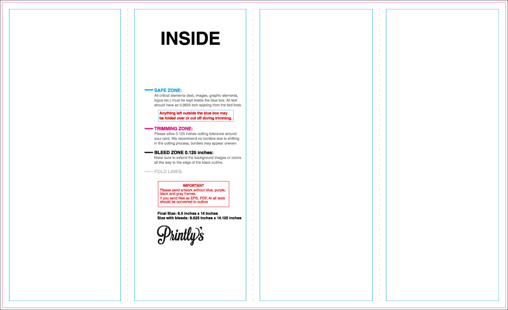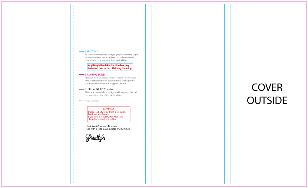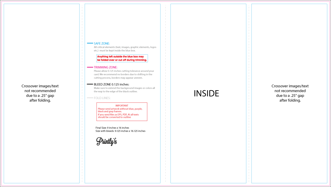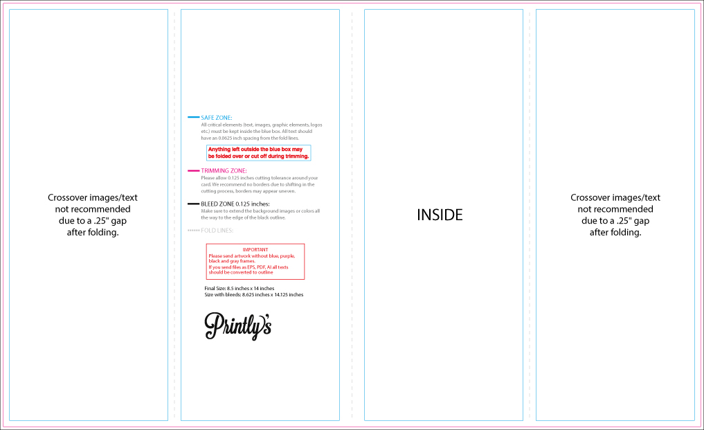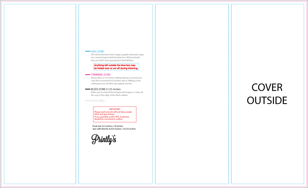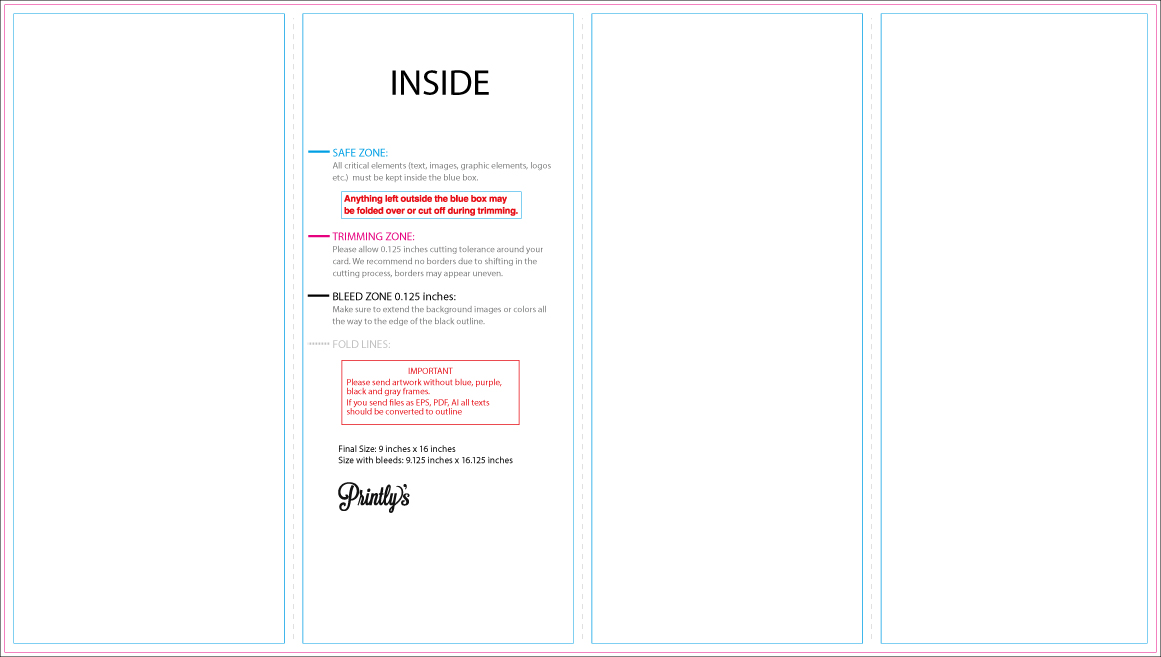 Templates Business Cards Dimensions Description Type PDF File EPS File JPG File 2x3.5 BUSINESS CARDS Horizontal 3.5x2 BUSINESS CARDS Vertical Flyers Dimensions Description Type PDF File EPS File JPG File 5.5x8.5 5.5 x 8.5 Vertical 8.5x14 8.5 x 14 Vertical 8.5x11 8.5 x 11 Vertical 11x17 11 x 17 Vertical Table Tents Dimensions Description Type PDF File EPS File JPG File 4x18 FOLDER - 3INCH - OUTSIDE - 4X18 Vertical Direct Mailers Dimensions Description Type PDF File EPS File JPG File 12 x 4.5Front Horizontal Brochures Dimensions Description Type PDF File EPS File JPG File 11x8.5 INSIDE - HALF FOLD Horizontal 11x8.5 OUTSIDE - HALF FOLD Horizontal 11x8.5 INSIDE - Z FOLD Horizontal 11x8.5 OUTSIDE - Z FOLD Horizontal 11x8.5 OUTSIDE - TRIFOLD Horizontal 11x8.5 INSIDE - TRIFOLD Horizontal 11x8.5 OUTSIDE - HALF FOLD TO 4.25 X 11 Horizontal 11x8.5 INSIDE - HALF FOLD TO 4.25 X 11 Horizontal 14x8.5 OUTSIDE - ACCORDION FOLD Horizontal 14x8.5 INSIDE - ACCORDION FOLD Horizontal 14x8.5 OUTSIDE - DOUBLE GATE FOLD Horizontal 14x8.5 INSIDE - DOUBLE GATE FOLD Horizontal 14x8.5 INSIDE - SINGLE OPEN GATE FOLD Horizontal 14x8.5 OUTSIDE - SINGLE OPEN GATE FOLD Horizontal 14x8.5 INSIDE - ROLL FOLD (4 PANEL) Horizontal 14x8.5 OUTSIDE - ROLL FOLD (4 PANEL) Horizontal 14x8.5 INSIDE - DOUBLE PARALLEL REVERSE FOLD Horizontal 14x8.5 OUTSIDE - DOUBLE PARALLEL REVERSE FOLD Horizontal 14x8.5 INSIDE - DOUBLE PARALLEL FOLD Horizontal 14x8.5 OUTSIDE - DOUBLE PARALLEL FOLD Horizontal 14x8.5 INSIDE - Z FOLD Horizontal 14x8.5 OUTSIDE - Z FOLD Horizontal 14x8.5 INSIDE - HALF FOLD Horizontal 14x8.5 OUTSIDE - HALF FOLD Horizontal 14x8.5 INSIDE - TRI FOLD Horizontal 14x8.5 OUTSIDE - TRI-FOLD Horizontal 14x8.5 OUTSIDE - TRI-FOLD Horizontal 9x6 INSIDE - TRI FOLD Horizontal 9x6 OUTSIDE - TRI-FOLD Horizontal 9x6 INSIDE - HALF FOLD Horizontal 9x6 OUTSIDE - HALF FOLD Horizontal 12x9 INSIDE - TRI-FOLD Horizontal 12x9 OUTSIDE - TRI-FOLD Horizontal 12x9 INSIDE - HALF FOLD Horizontal 12x9 OUTSIDE - HALF FOLD Horizontal 12x9 INSIDE - Z FOLD Horizontal 12x9 OUTSIDE - Z FOLD Horizontal 12x9 INSIDE - ROLL FOLD (4 PANEL) Horizontal 12x9 OUTSIDE - ROLL FOLD (4 PANEL) Horizontal 12x9 INSIDE - HALF FOLD TO 4.5 X12 Horizontal 12x9 OUTSIDE - HALF FOLD TO 4.5 X 12 Horizontal 12x9 INSIDE - ACCORDION FOLD Horizontal 12x9 OUTSIDE - ACCORDION FOLD Horizontal 12x9 INSIDE - HALF FOLD Horizontal 12x9 OUTSIDE - HALF FOLD Horizontal 16x9 INSIDE - ACCORDION FOLD Horizontal 17x11 OUTSIDE - DOUBLE GATE FOLD Horizontal 16x9 OUTSIDE - ACCORDION FOLD Horizontal 16x9 INSIDE - DOUBLE GATE FOLD Horizontal 16x9 OUTSIDE - DOUBLE GATE FOLD Horizontal 16x9 INSIDE - DOUBLE PARALLEL FOLD Horizontal 16x9 OUTSIDE - DOUBLE PARALLEL FOLD Horizontal 16x9 INSIDE - DOUBLE PARALLEL REVERSE FOLD Horizontal 16x9 OUTSIDE - DOUBLE PARALLEL REVERSE FOLD Horizontal 16x9 INSIDE - HALF FOLD Horizontal 16x9 OUTSIDE - HALF FOLD Horizontal 16x9 INSIDE - ROLL FOLD (4 PANEL) Horizontal 16x9 OUTSIDE - ROLL FOLD (4 PANEL) Horizontal 16x9 INSIDE - SINGLE OPEN GATE FOLD Horizontal 16x9 OUTSIDE - SINGLE OPEN GATE FOLD Horizontal 16x9 INSIDE - TRI-FOLD Horizontal 16x9 OUTSIDE - TRI-FOLD Horizontal 16x9 INSIDE - Z FOLD Horizontal 16x9 OUTSIDE - Z FOLD Horizontal 17x11 INSIDE - ACCORDION FOLD Horizontal 17x11 OUTSIDE - ACCORDION FOLD Horizontal 17x11 INSIDE - DOUBLE GATE FOLD Horizontal 17x11 INSIDE DOUBLE PARALLEL FOLD Horizontal 17x11 OUTSIDE - DOUBLE PARALLEL FOLD Horizontal 17x11 DOUBLE PARALLEL REVERSE FOLD Horizontal 17x11 OUTSIDE - DOUBLE PARALLEL REVERSE FOLD Horizontal 17x11 INSIDE - HALF FOLD TO TRI-FOLD Horizontal 17x11 OUTSIDE - HALF FOLD TO TRI-FOLD Horizontal 17x11 INSIDE - HALF FOLD TO 8.5 X 11 FOLD Horizontal 17x11 OUTSIDE - HALF FOLD TO 5.5 X 8.5 FOLD Horizontal 17x11 INSIDE - HALF FOLD TO 8.5 X 11 FOLD Horizontal 17x11 OUTSIDE - HALF FOLD TO 8.5 X 11 FOLD Horizontal 17x11 INSIDE - ROLL FOLD (4 PANEL) Horizontal 17x11 OUTSIDE - ROLL FOLD (4PANEL) Horizontal 17x11 INSIDE - SINGLE OPEN GATE FOLD Horizontal 17x11 OUTSIDE - SINGLE OPEN GATE FOLD Horizontal 17x11 INSIDE - TRI-FOLD Horizontal 17x11 OUTSIDE - TRI-FOLD Horizontal 17x11 INSIDE - Z-FOLD Horizontal 17x11 OUTSIDE - Z-FOLD Horizontal 25.5x11 INSIDE - TRI-FOLD Horizontal 25.5x11 OUTSIDE - TRI-FOLD Horizontal 18x12 INSIDE - ACCORDION FOLD Horizontal 18x12 OUTSIDE - ACCORDION FOLD Horizontal 18x12 INSIDE - DOUBLE GATE FOLD Horizontal 18x12 OUTSIDE - DOUBLE GATE FOLD Horizontal 18x12 INSIDE - DOUBLE PARALLEL FOLD Horizontal 18x12 OUTSIDE - DOUBLE PARALLEL FOLD Horizontal 18x12 INSIDE - DOUBLE PARALLEL REVERSE FOLD Horizontal 18x12 OUTSIDE - DOUBLE PARALLEL REVERSE FOLD Horizontal 18x12 INSIDE - HOLD Horizontal 18x12 OUTSIDE - HALF FOLD Horizontal 18x12 INSIDE - HALF FOLD THEN HALF FOLD Horizontal 18x12 OUTSIDE - HALF FOLD THEN HALF FOLD Horizontal 18x12 INSIDE - HALF FOLD THEN TRI-FOLD Horizontal 18x12 OUTSIDE - HALF FOLD TO TRI-FOLD Horizontal 18x12 INSIDE - ROLL FOLD Horizontal 18x12 OUTSIDE - ROLL FOLD Horizontal 18x12 INSIDE - SINGLE OPEN GATE FOLD Horizontal 18x12 OUTSIDE - SINGLE OPEN GATE FOLD Horizontal 18x12 INSIDE - TRI-FOLD Horizontal 18x12 OUTSIDE - TRI-FOLD Horizontal 18x12 INSIDE - Z FOLD Horizontal 18x12 OUTSIDE - Z FOLD Horizontal Letterheads Dimensions Description Type PDF File EPS File JPG File 8.5x14 LETTERHEAD 8.5 x 14 Horizontal 8.5x11 STANDARD LETTERHEAD 8.5 X 11 Vertical Door Hangers Dimensions Description Type PDF File EPS File JPG File 4.25x11 FRONT - DOOR HANGERS Horizontal 3.5x8.5 BACK - DOOR HANGER Vertical 3.5x8.5 FRONT - DOOR HANGER Horizontal 4.25x11 BACK - DOORHANGER Horizontal Poster Printing Dimensions Description Type PDF File EPS File JPG File 19x13 POSTER PRINTING Horizontal 24x18 POSTER PRINTING Horizontal 27x19 POSTER PRINTING Horizontal 36x24 POSTER PRINTING Horizontal 38x24 POSTER PRINTING Horizontal 39x26 POSTER PRINTING Horizontal